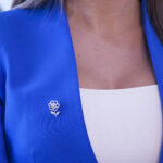 Trandafirul, un simbol al iubirii și al pasiunii, este redat cu detalii delicate, iar cristalele strălucitoare amplifică strălucirea și frumusețea bijuteriei. Broșa este ca un simbol al iubirii și al frumuseții, purtând cu ea semnificația profundă a trandafirului în cultura universală. Această broșă în formă de trandafir pare să captureze esența frumuseții naturale și a romantismului într-o bijuterie subtilă.