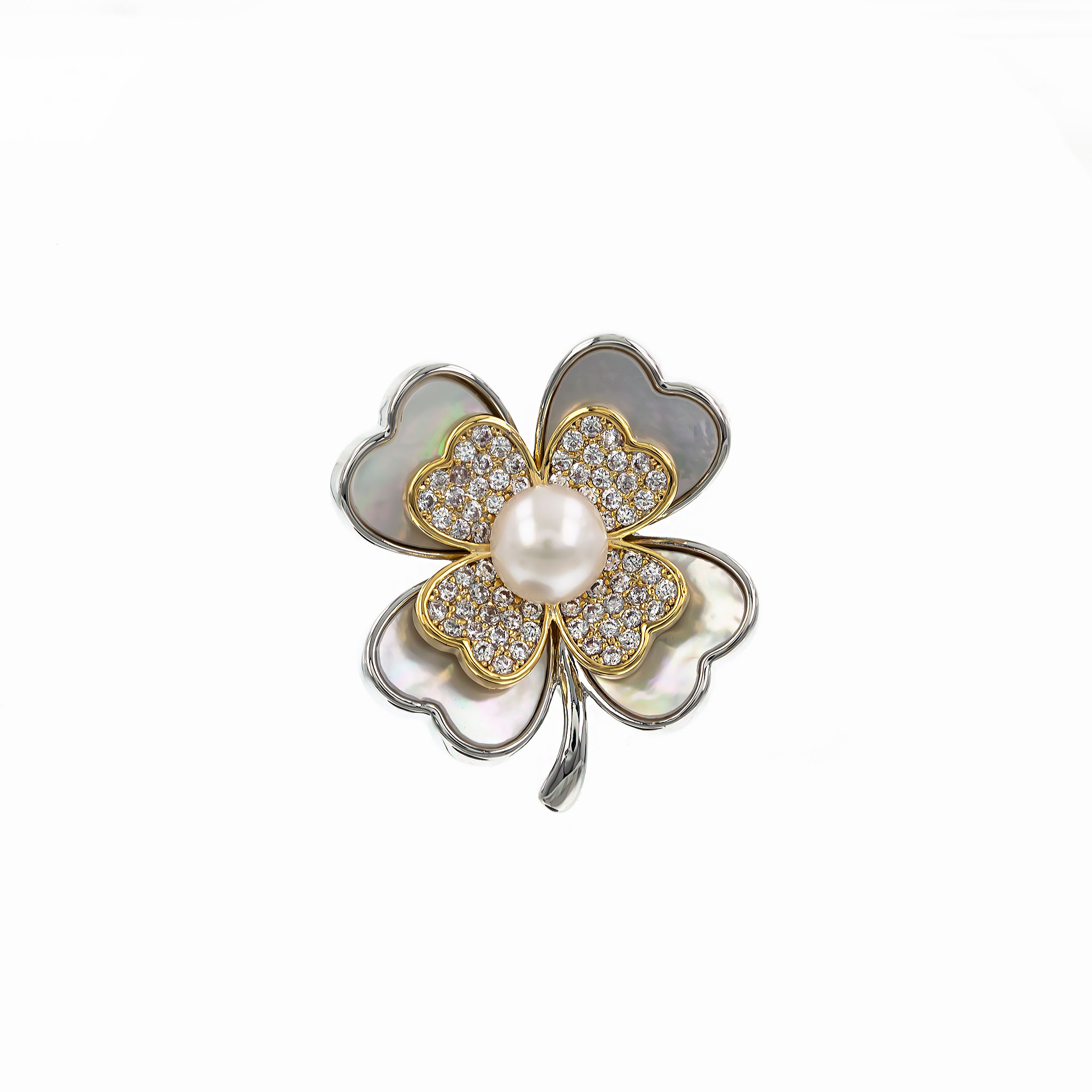 Broșă Pin Premium White Plated Palladium – Trifoi cu Perlă