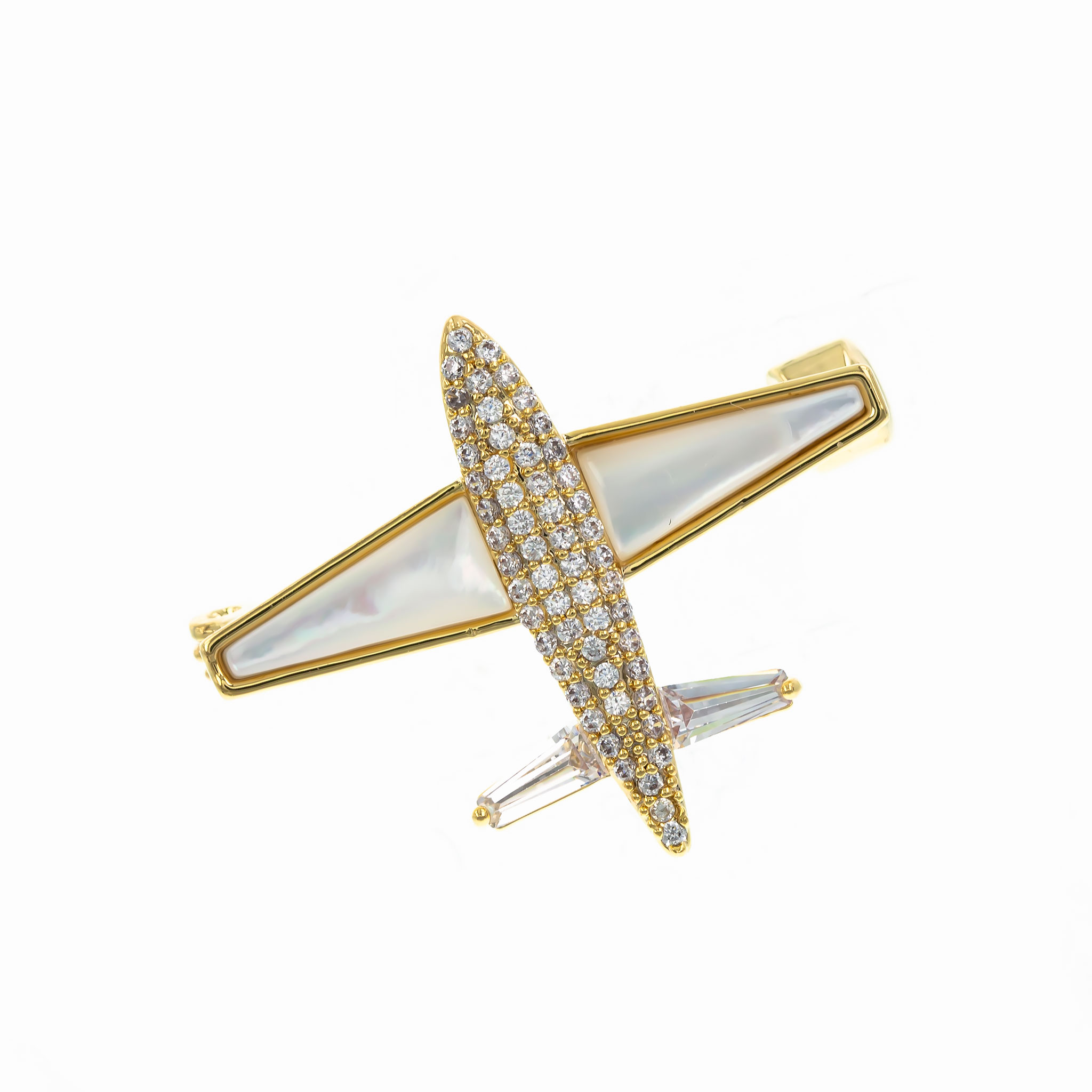 Broșa în formă de avion este o bijuterie jucăușă și elegantă, care captează esența călătoriilor și a visurilor de zbor.