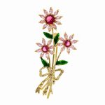Broșă PREMIUM Gold Plated – Buchet cu Floricele Roz