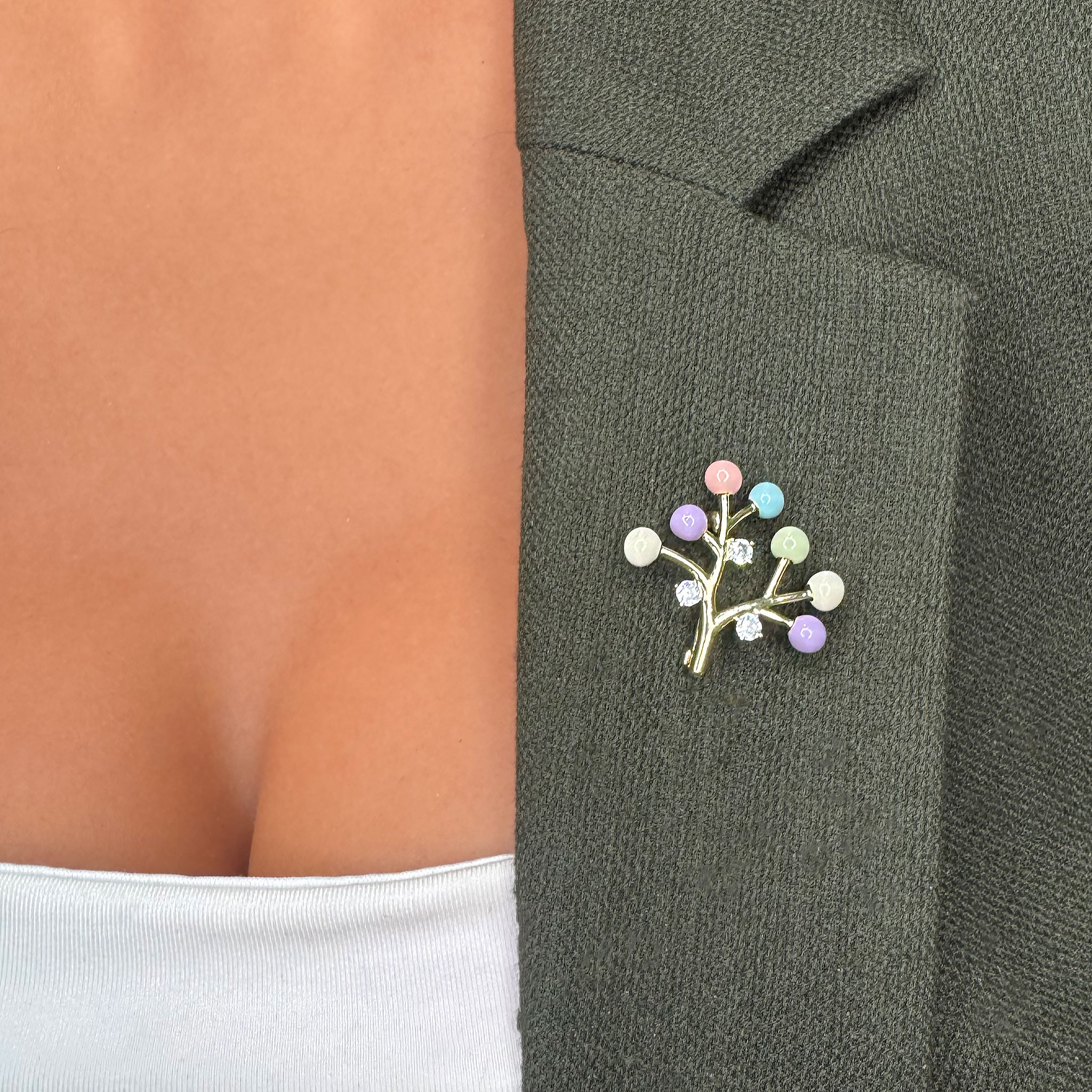 Broșa în formă de copăcel colorat este o bijuterie plină de viață și energie, care simbolizează creșterea, înțelepciunea și natura înfloritoare. Cu un design vibrant, fiecare detaliu al copăcelului este realizat cu măiestrie pentru a reflecta armonia dintre culori și forme.