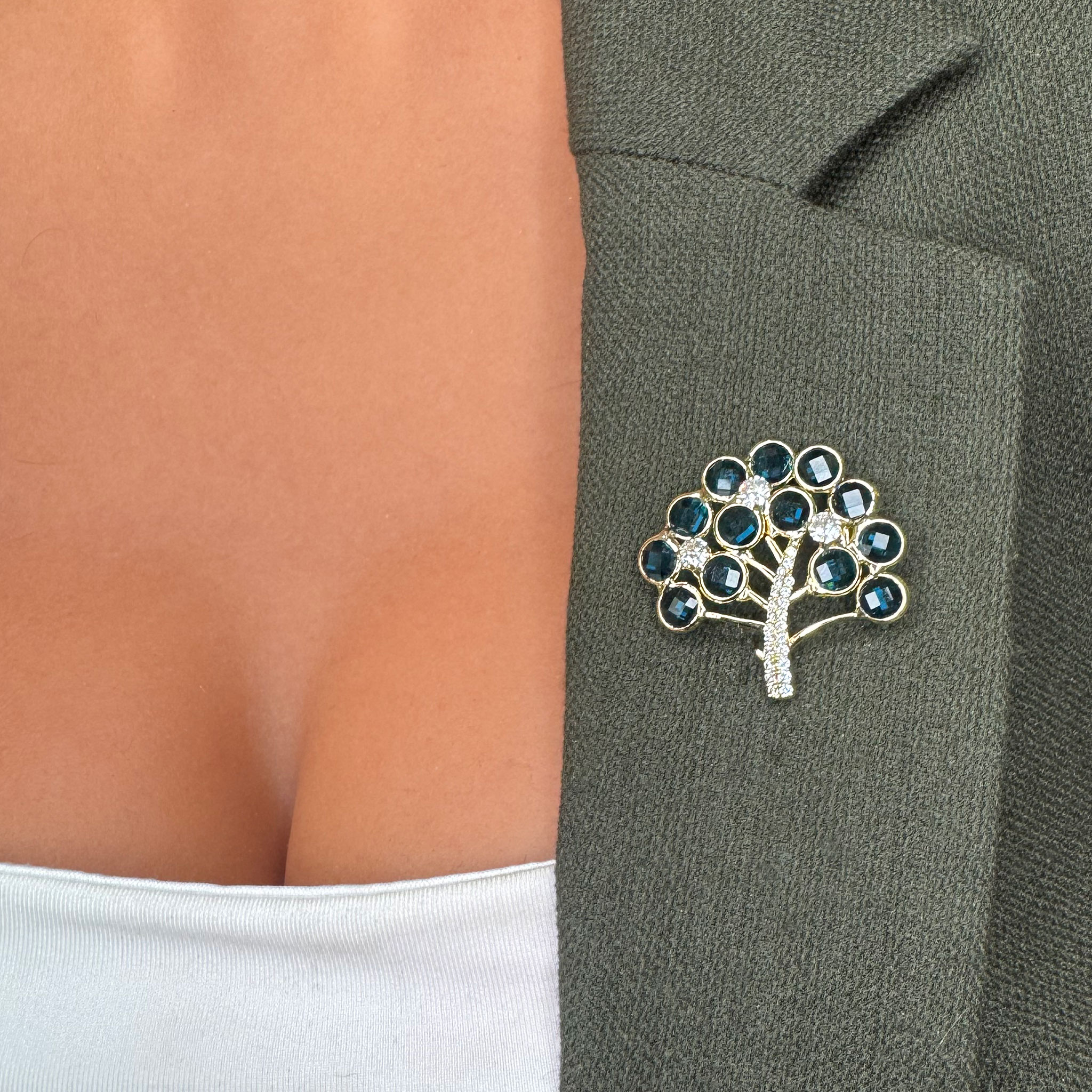 Broșa în formă de copăcel cu pietre albastre este o bijuterie elegantă, care simbolizează creșterea, viața și înțelepciunea. Copăcelul, cu ramurile sale delicate, se împletește cu pietre albastre care aduc un aer de serenitate și calm.