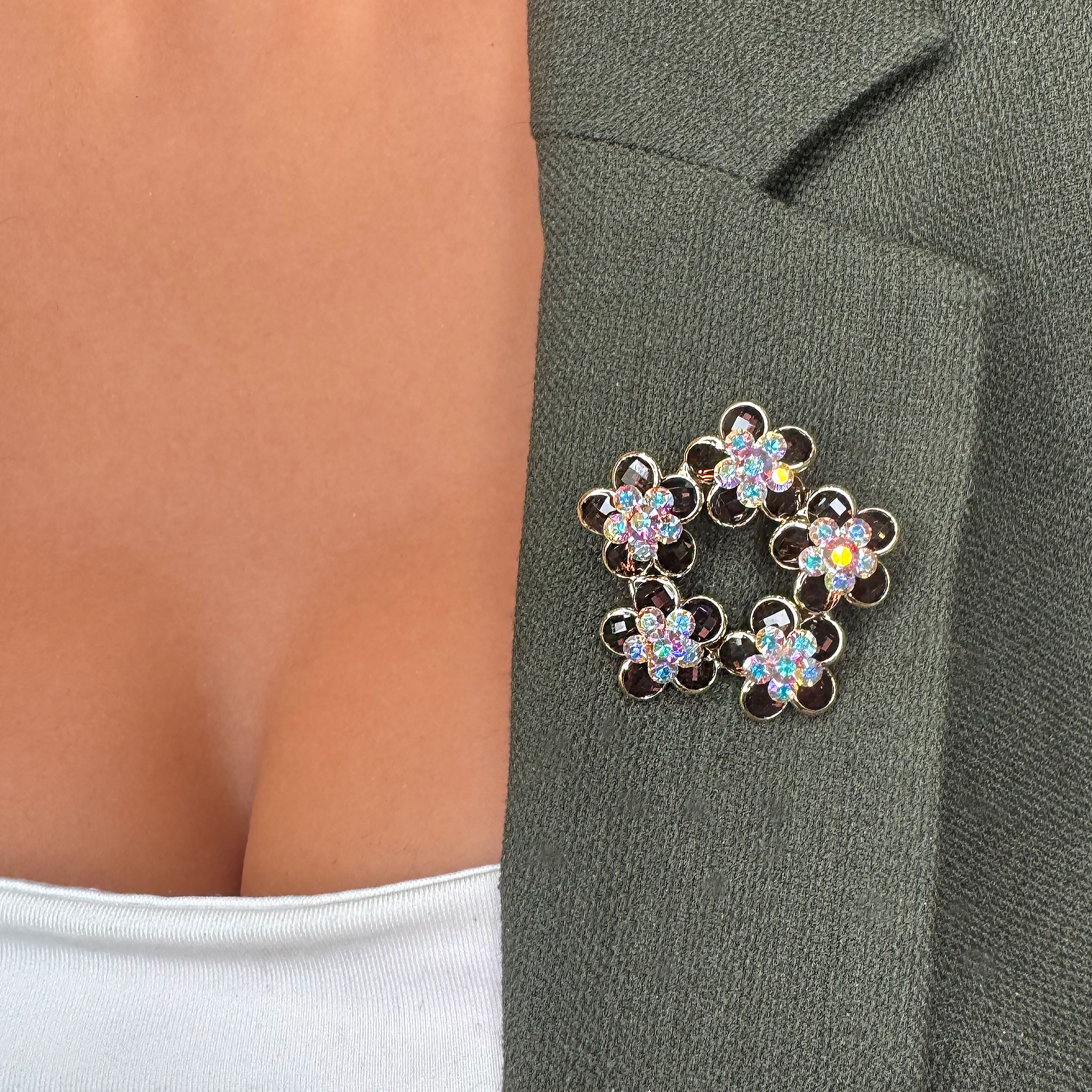 - Design Elegant: Coronița este decorată cu flori delicate, ce evocă prospețimea și frumusețea naturii, creând un accesoriu subtil, dar remarcabil. Finisajul gold plated oferă broșei un aspect elegant și atrăgător.
