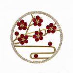 Broșă PREMIUM Gold Plated – Coroniță cu Floricele Roșii
