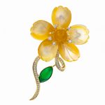 Această broșă în formă de floare cu perlă portocalie adaugă un strop de prospețime și feminitate ținutelor tale. Finisajul gold plated scoate în evidență fiecare petală, iar perla portocalie oferă un accent luminos și plin de viață, transformând broșa într-un accesoriu potrivit pentru ocazii speciale.