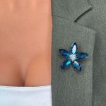 Această broșă în formă de floare cu petale albastre este o bijuterie rafinată ce adaugă un strop de eleganță oricărei ținute. Designul floral sugerează feminitate și subtilitate, iar finisajul atent realizat subliniază frumusețea detaliilor.
