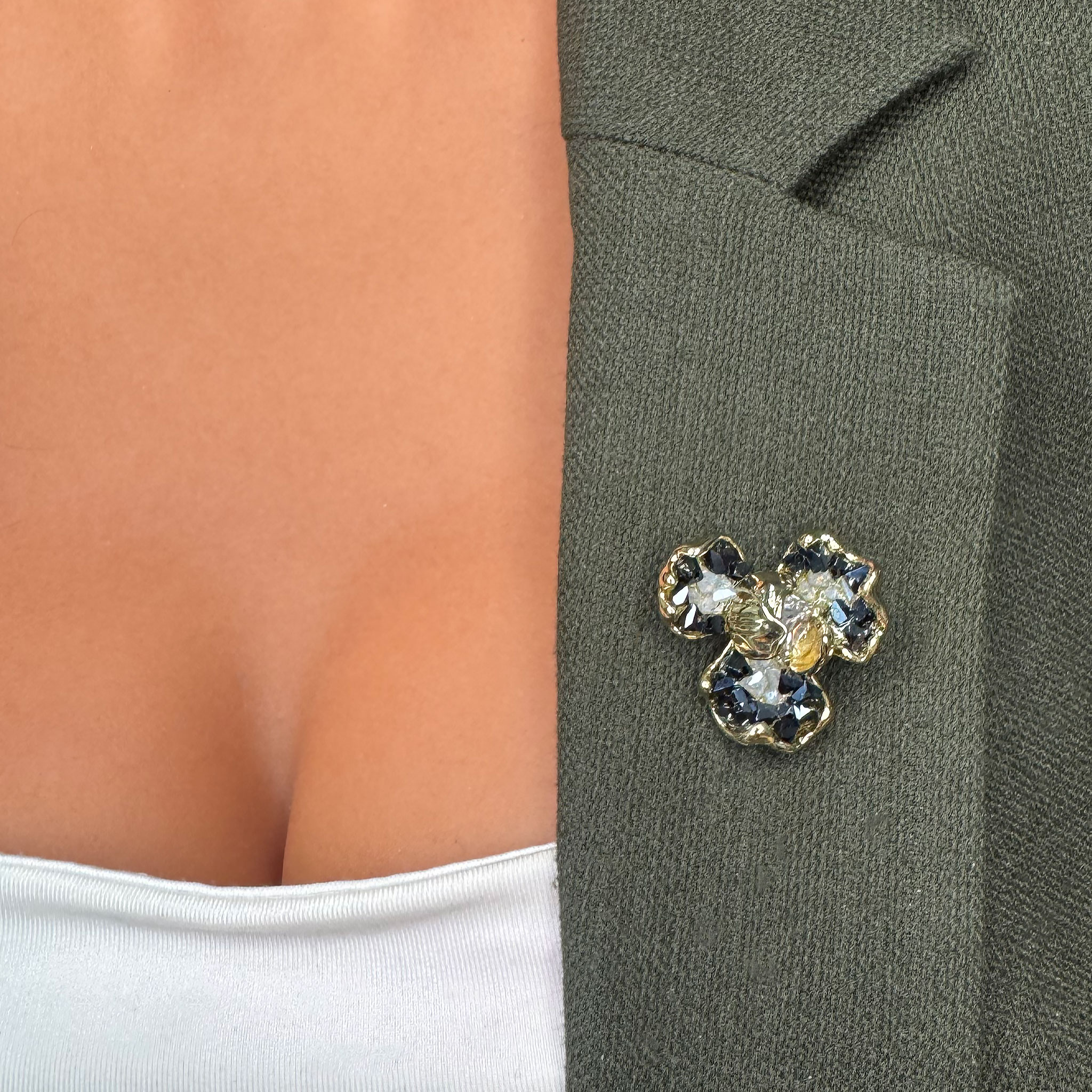 Broșa în formă de Floare Neagră Stilizată este o bijuterie elegantă, ce îmbină simplitatea și misterul cu rafinamentul unui design atent lucrat.