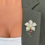 Această broșă în formă de floricele cu perlă întruchipează delicatețea și feminitatea, oferind un plus de eleganță și simbolism.