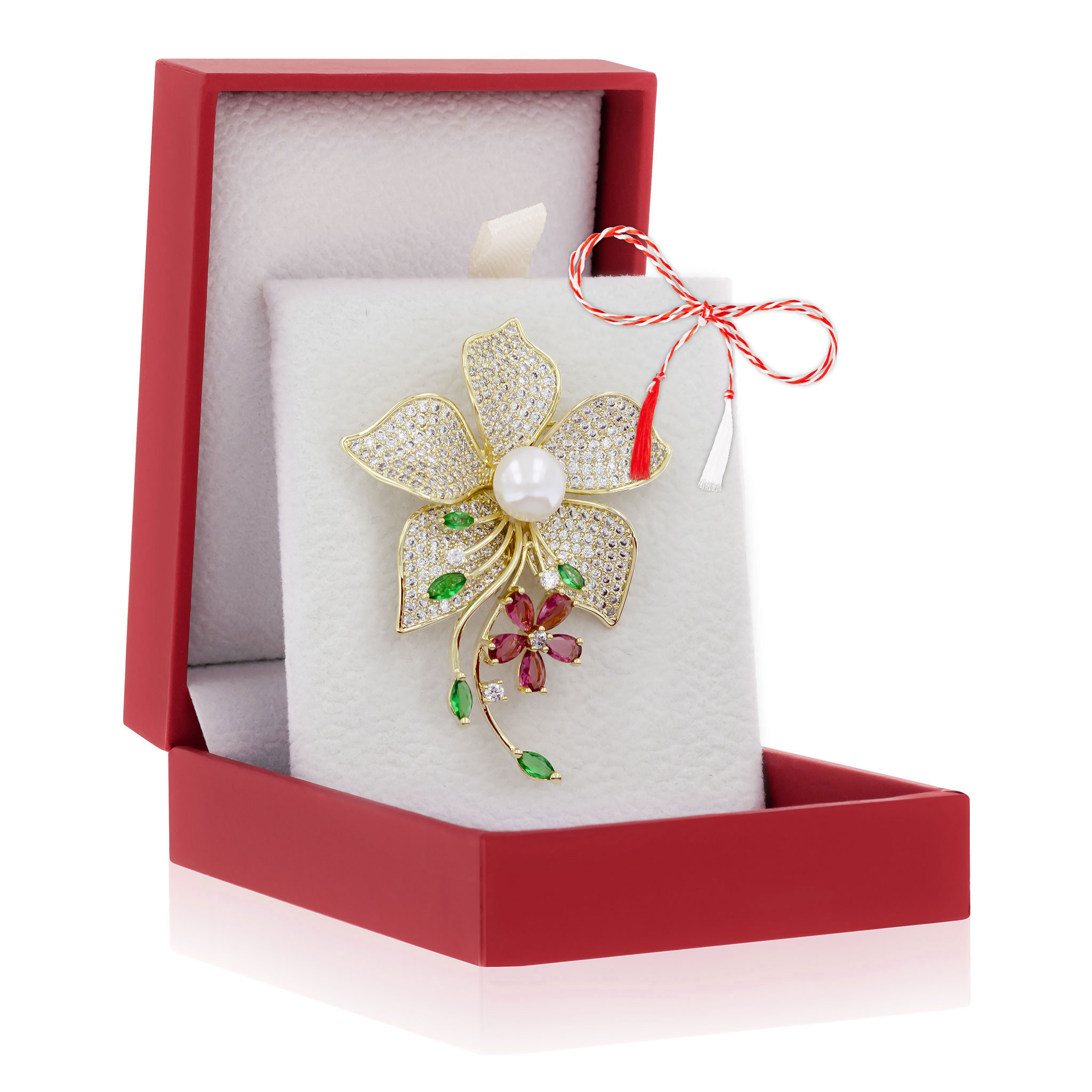 - Broșă Premium Gold Plated Floricele cu Perlă, șnur Marțișor alb-roșu, ambalată pe suport pentru broșă și casetă, însoțită de pungă cadou și plic roșu pentru mesaj, pregătită cu grijă astfel încât să devină un cadou memorabil.
