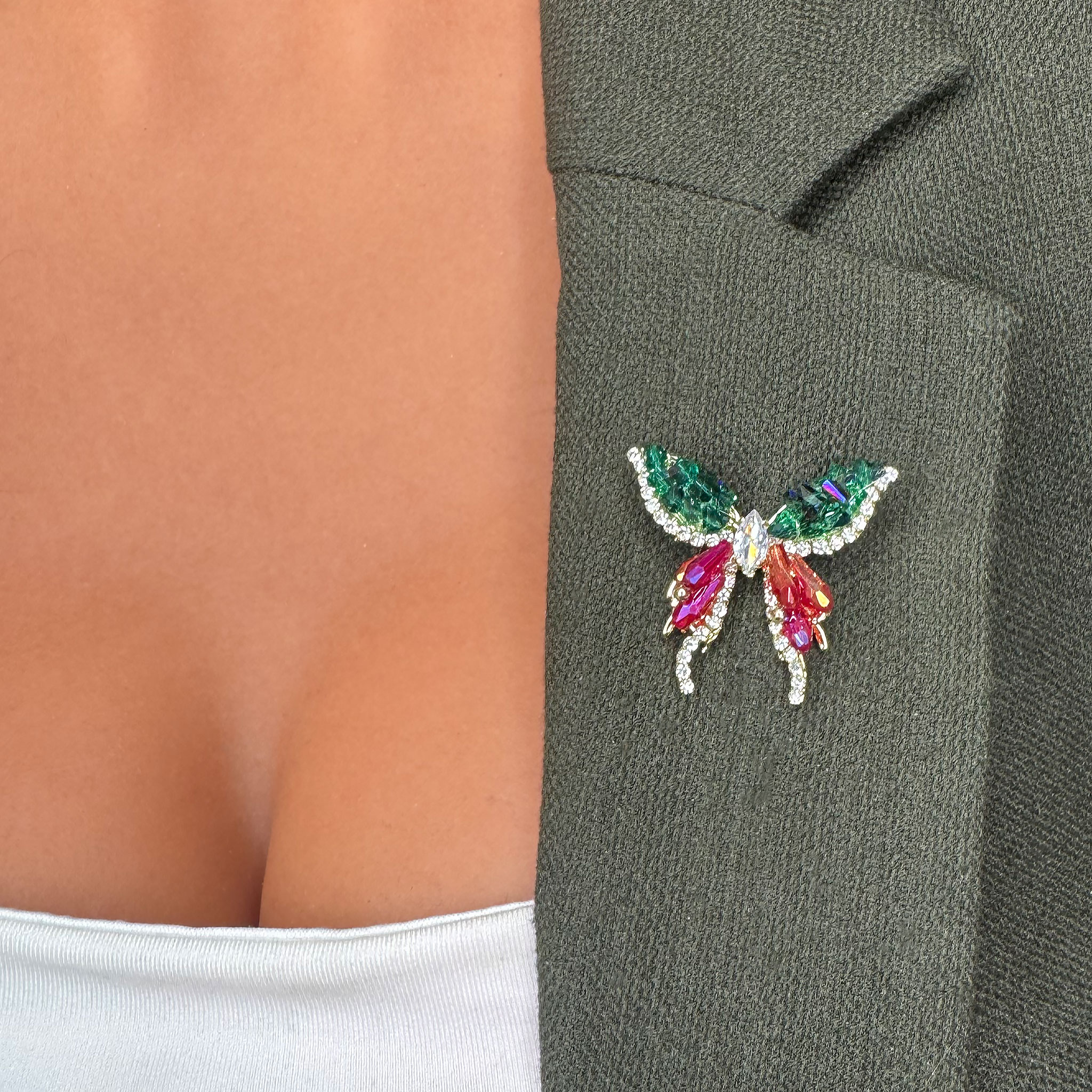 Broșa în formă de fluturaș strălucitor este o bijuterie delicată și plină de simbolism, care adaugă o notă de prospețime și grație oricărei ținute. Designul său inspirat de frumusețea naturală a unui fluturaș surprinde mișcarea și libertatea acestuia, fiind un simbol al transformării și al unei noi începuturi.