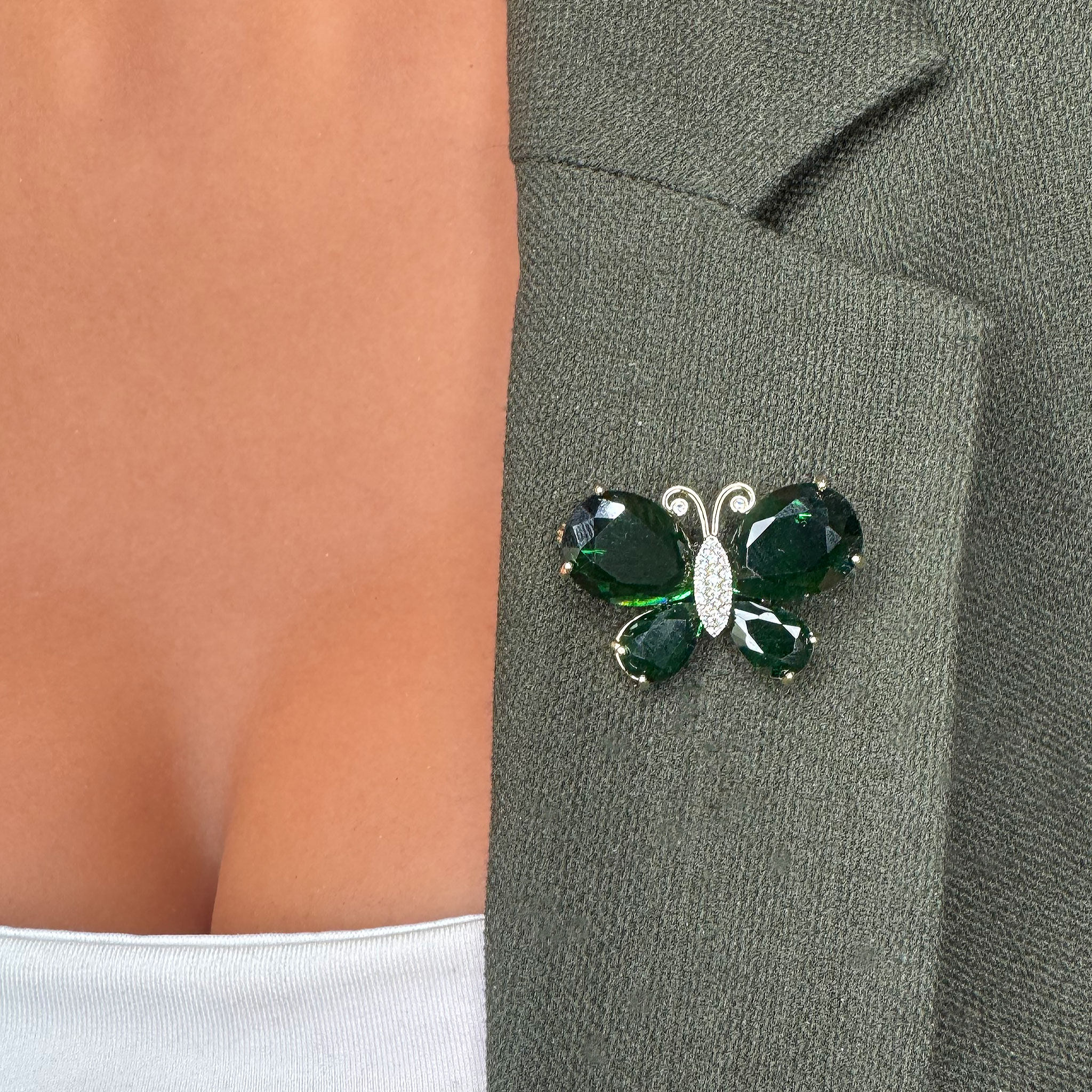 Broșa în formă de fluture zburător este un simbol al libertății și al transformării. Designul detaliat al fluturelui, cu aripi ușor ridicate, pare să capteze mișcarea și energia unui zbor lin, aducând un plus de dinamism ținutei tale.