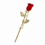 Broșă PREMIUM Gold Plated – Model Boboc de Trandafir Roșu