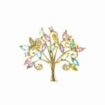 Broșă PREMIUM Gold Plated – Model Copac cu Pietre Colorate