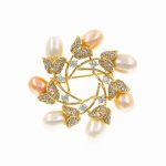 Broșă PREMIUM Gold Plated – Model Coroniță cu Perle