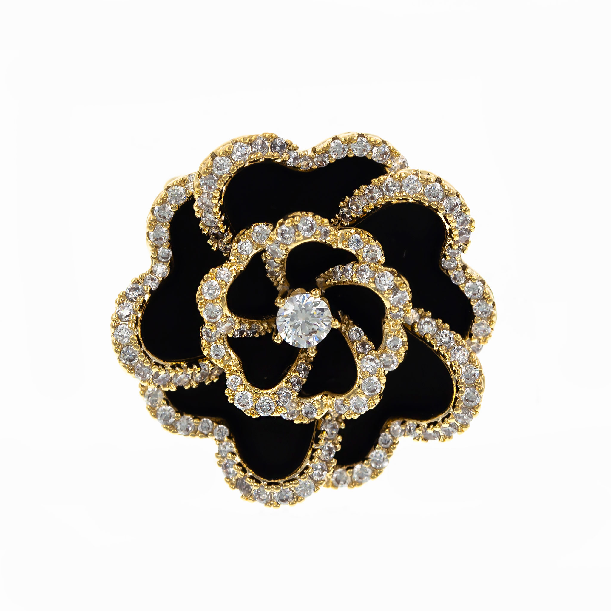 Broșă PREMIUM Gold Plated – Model Floare cu Petale Negre
