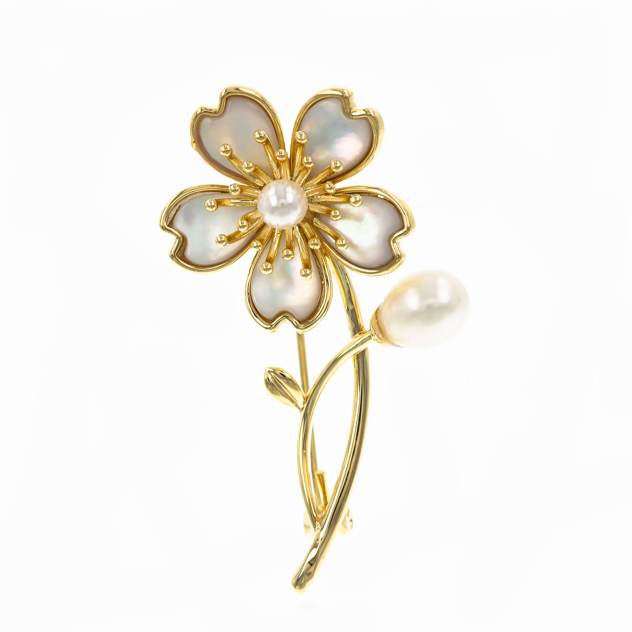 Broșă PREMIUM Gold Plated – Model Floare cu Petale Sidef
