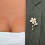 Broșa în formă de floare cu petale sidefate adaugă delicatețe, eleganță și un strop de strălucire ținutelor tale, fiind un accesoriu ideal pentru primăvară.