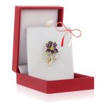 - Broșă PREMIUM Gold Plated – Model Floricică cu Petale Mov, șnur Marțișor alb-roșu, ambalată pe suport pentru broșă și casetă, pregătită cu grijă astfel încât să devină un cadou memorabil.