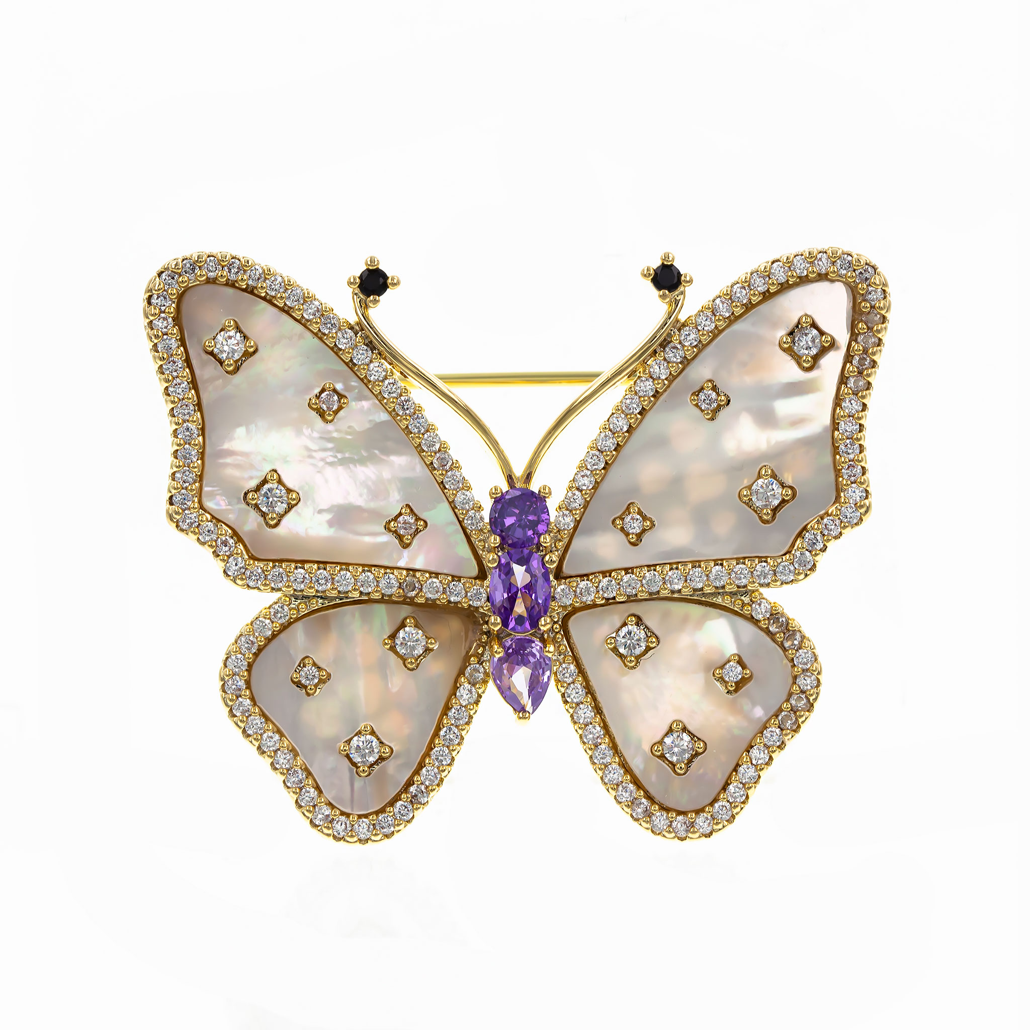 Broșă PREMIUM Gold Plated – Model Fluturaș cu Pietre Mov