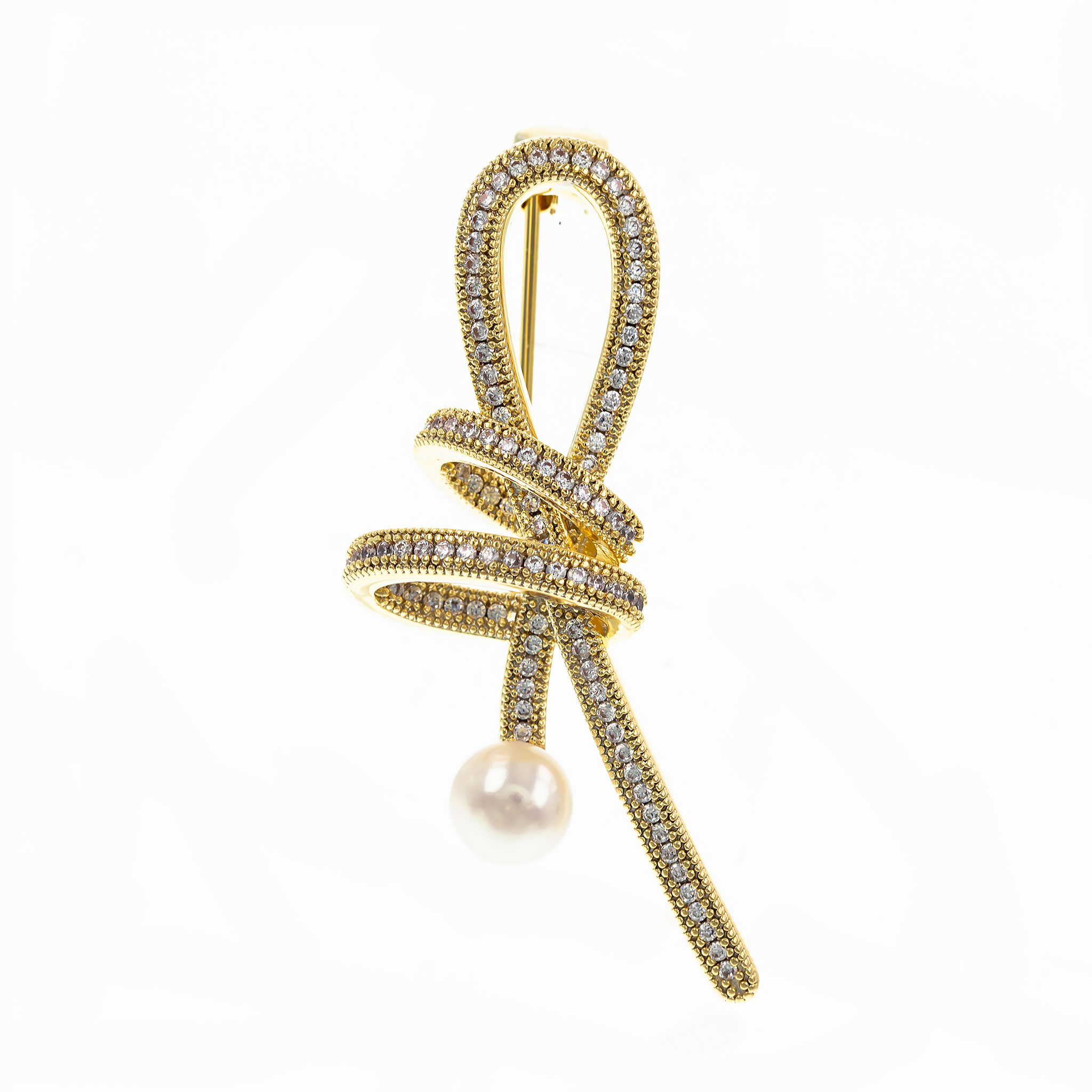 Broșă PREMIUM Gold Plated – Model Fundiță Stilizată