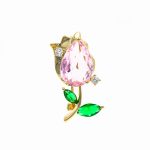 Broșa în formă de lalea cu piatră roz este o bijuterie elegantă, care aduce un omagiu frumuseții delicate a florilor primăverii. Lalelele, simboluri ale iubirii și ale rafinamentului, sunt reprezentate cu grație în acest design, iar piatra roz adaugă un accent de culoare subtil și feminin.