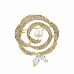 Broșă PREMIUM Gold Plated – Model Trandafir cu Perlă