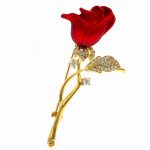 Broșă PREMIUM Gold Plated – Model Trandafir Roșu cu Pietricele
