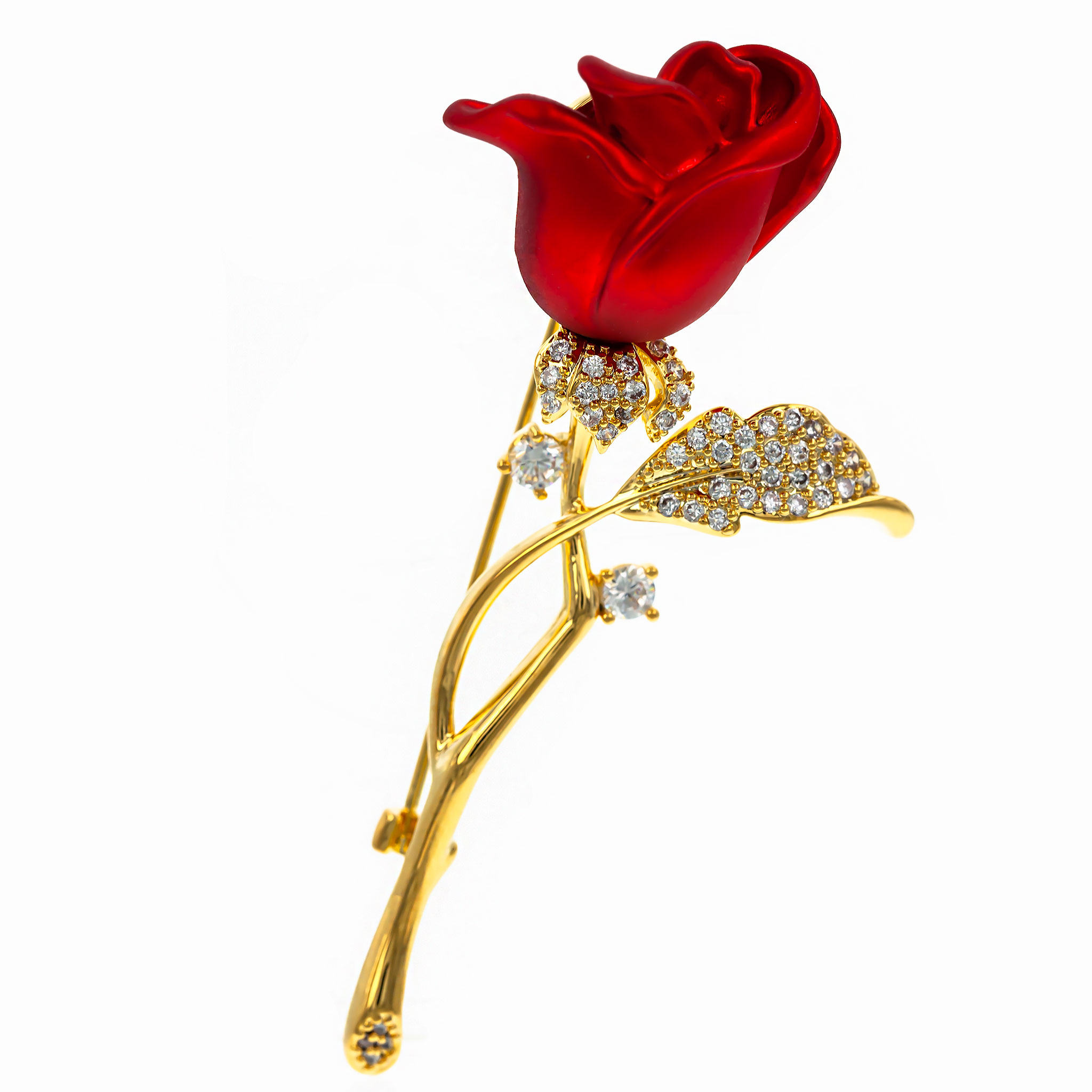 Această broșă reprezintă un trandafir roșu, decorat cu pietricele strălucitoare, adăugând un strop de rafinament și romantism ținutelor tale. Finisajul gold plated scoate în evidență delicatețea petalelor și conturul florii, iar pietricelele conferă un efect elegant și luminos, transformând broșa într-un accesoriu ideal pentru evenimente speciale sau cadouri memorabile.