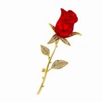 Broșă PREMIUM Gold Plated – Model Trandafir Roșu