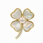 Broșă PREMIUM Gold Plated – Model Trifoi cu Perlă