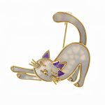 Broșă PREMIUM Gold Plated – Pisică cu Fundiță Mov