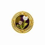 Această broșă cu ramă vintage decorată cu perle aduce un aer de eleganță fiecărei ținute. Finisajul gold plated pune în valoare delicatețea perlelor, iar designul vintage creează un accesoriu ce evocă frumusețea clasică și feminitatea subtilă.