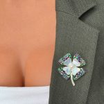 Broșa în formă de trifoi cu pietricele lila adaugă un strop de eleganță și feminitate ținutelor tale, fiind un simbol de noroc perfect pentru primăvară.