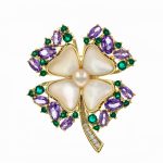 - Design Elegant: Trifoiul cu pietricele mov creează un punct de atracție delicat, plin de feminitate și stil, iar finisajul gold plated conferă broșei un aspect atrăgător.