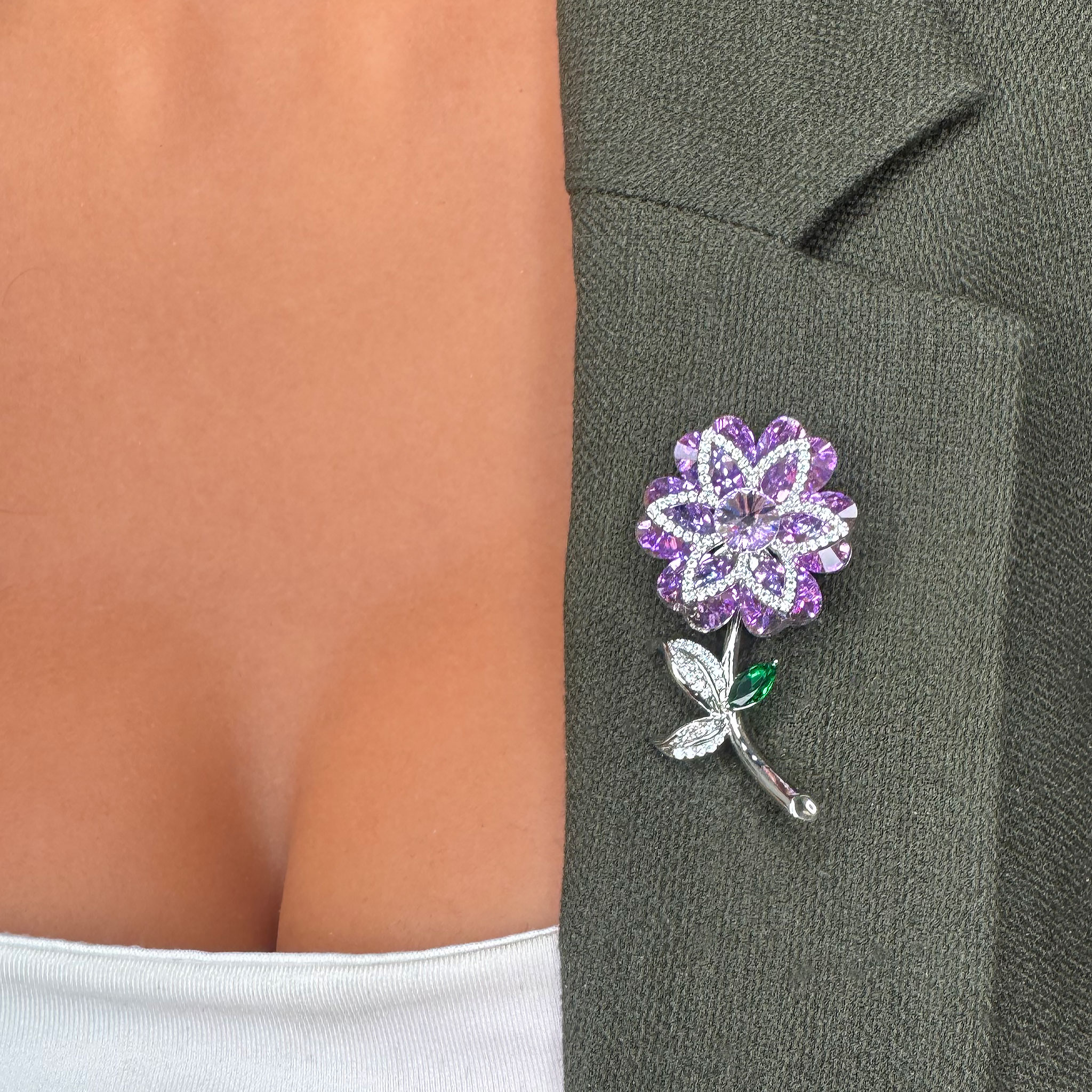 Broșă PREMIUM White Plated Palladium -Floare Prețioasă Mov