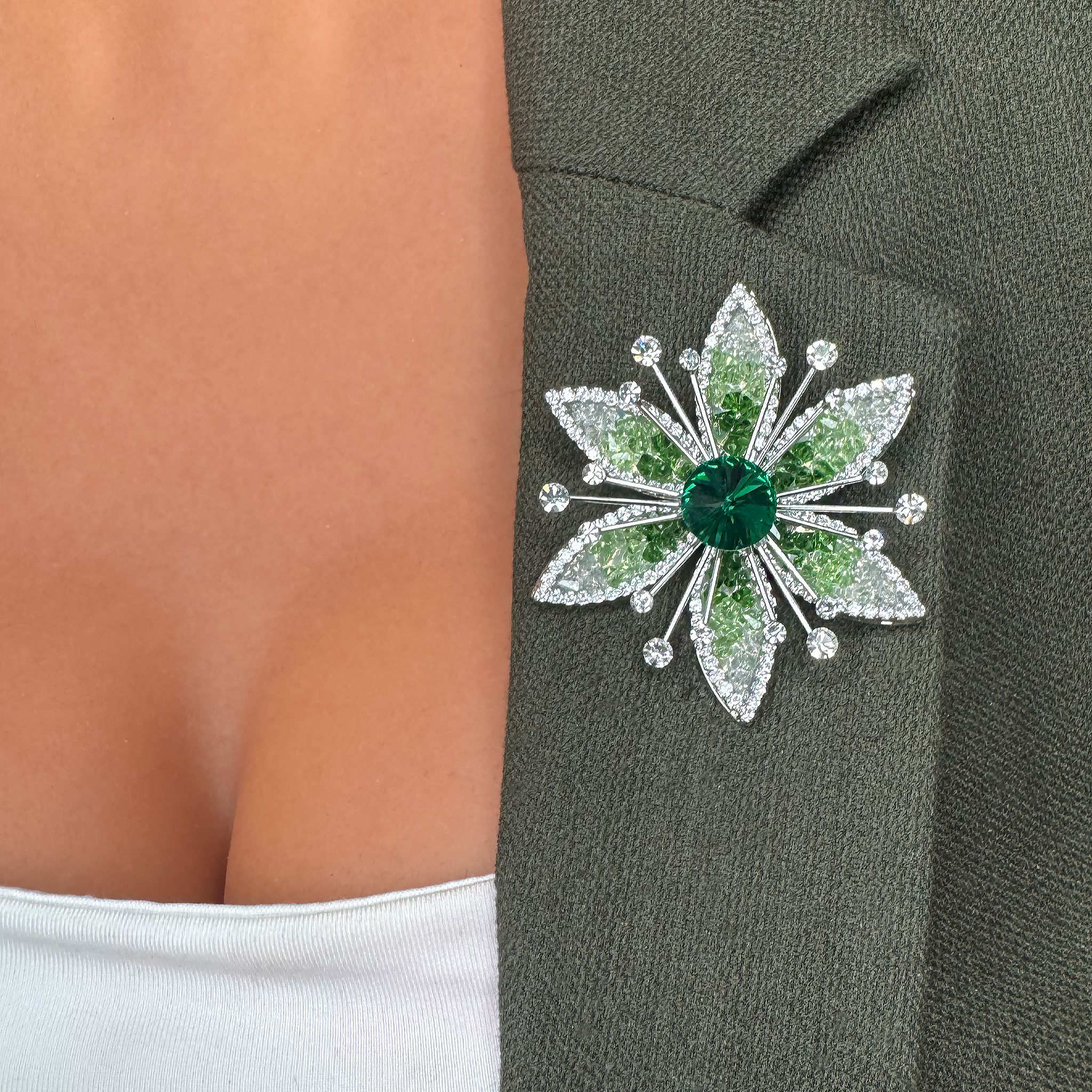 Broșă PREMIUM White Plated Palladium -Floare Regală Verde