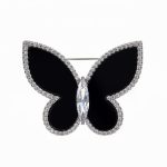 Broșă PREMIUM White Plated Palladium – Fluture cu Aripi Negre