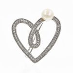 Broșă PREMIUM White Plated Palladium – Inimă cu Perlă