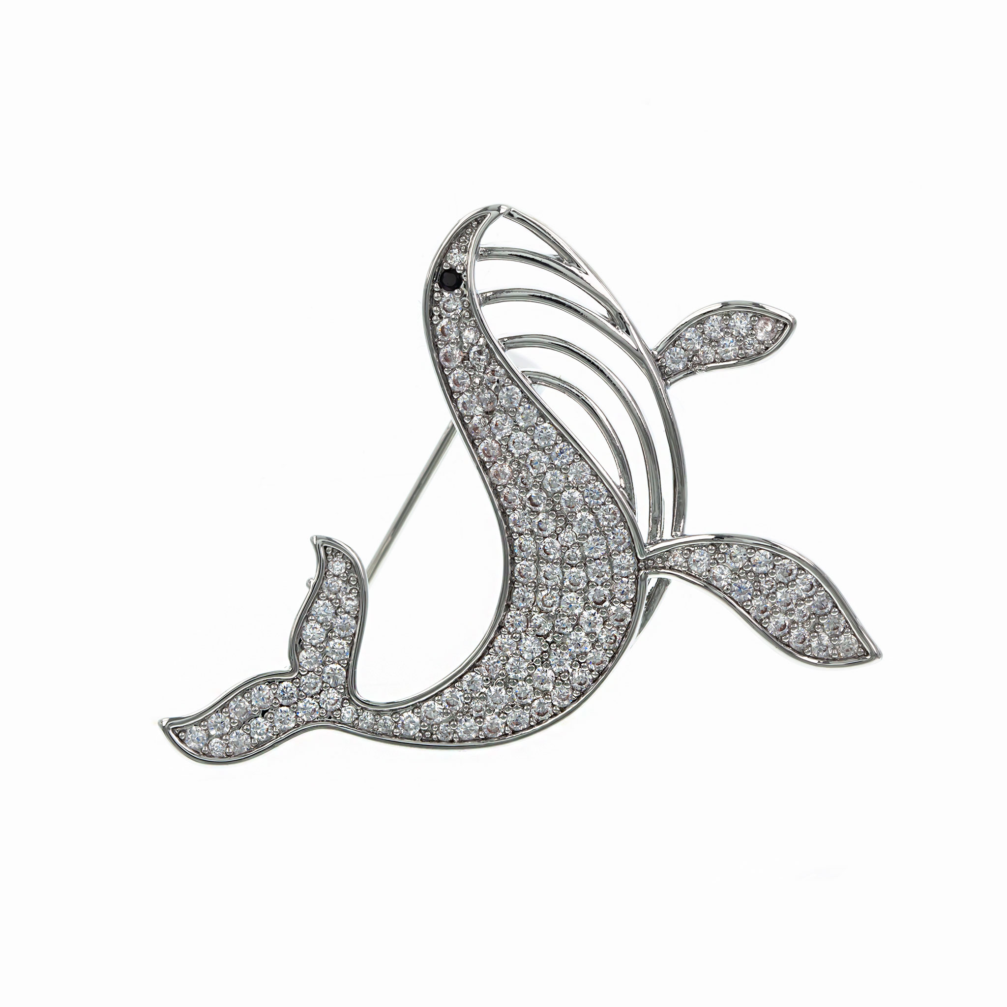Broșă PREMIUM White Plated Palladium – Model Balenă