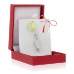 - Broșă Premium White Plated Palladium – Model Lalea Galbenă, șnur Marțișor alb-roșu, ambalată pe suport pentru broșă și casetă, pregătită cu grijă astfel încât să devină un cadou memorabil.