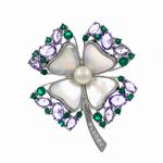 Broșă PREMIUM White Plated Palladium – Trifoi cu Pietricele Mov