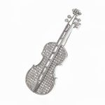 - Design Elegant: Forma distinctivă de vioară atrage privirile și adaugă un accent artistic ținutelor, iar finisajul white palladium îi conferă broșei un aspect luminos.