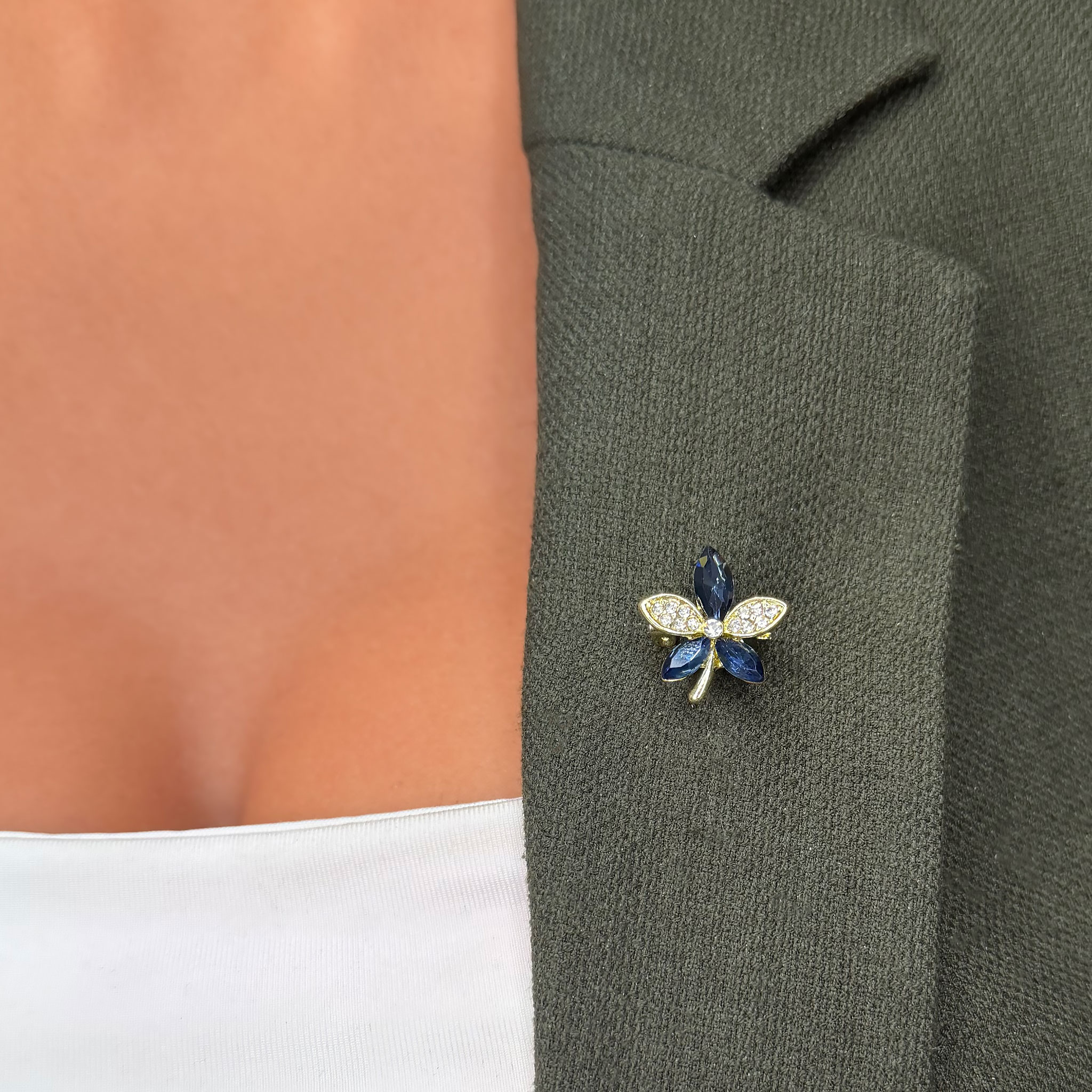 - Florile cu petale albastre reprezintă o frumusețe delicată și profundă, astfel această broșă poate fi privită ca o expresie a eleganței în tonuri subtile.