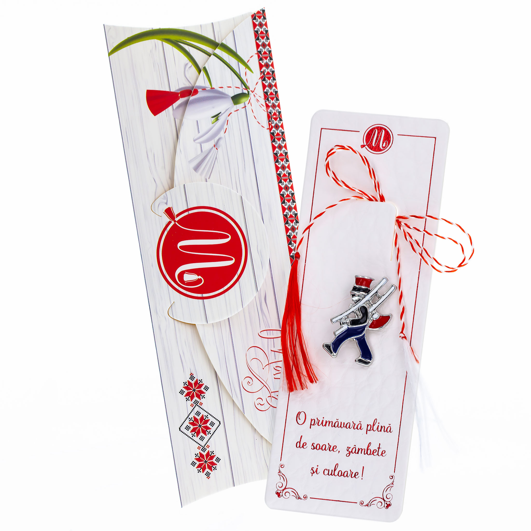 - Broșă Mărțișor Zalia Coșarul Norocos , șnur Marțișor alb-roșu, însoțită de suport pentru broșă și plic, pregătită cu grijă pentru a fi oferită ca un cadou special, simbol al tradiției.