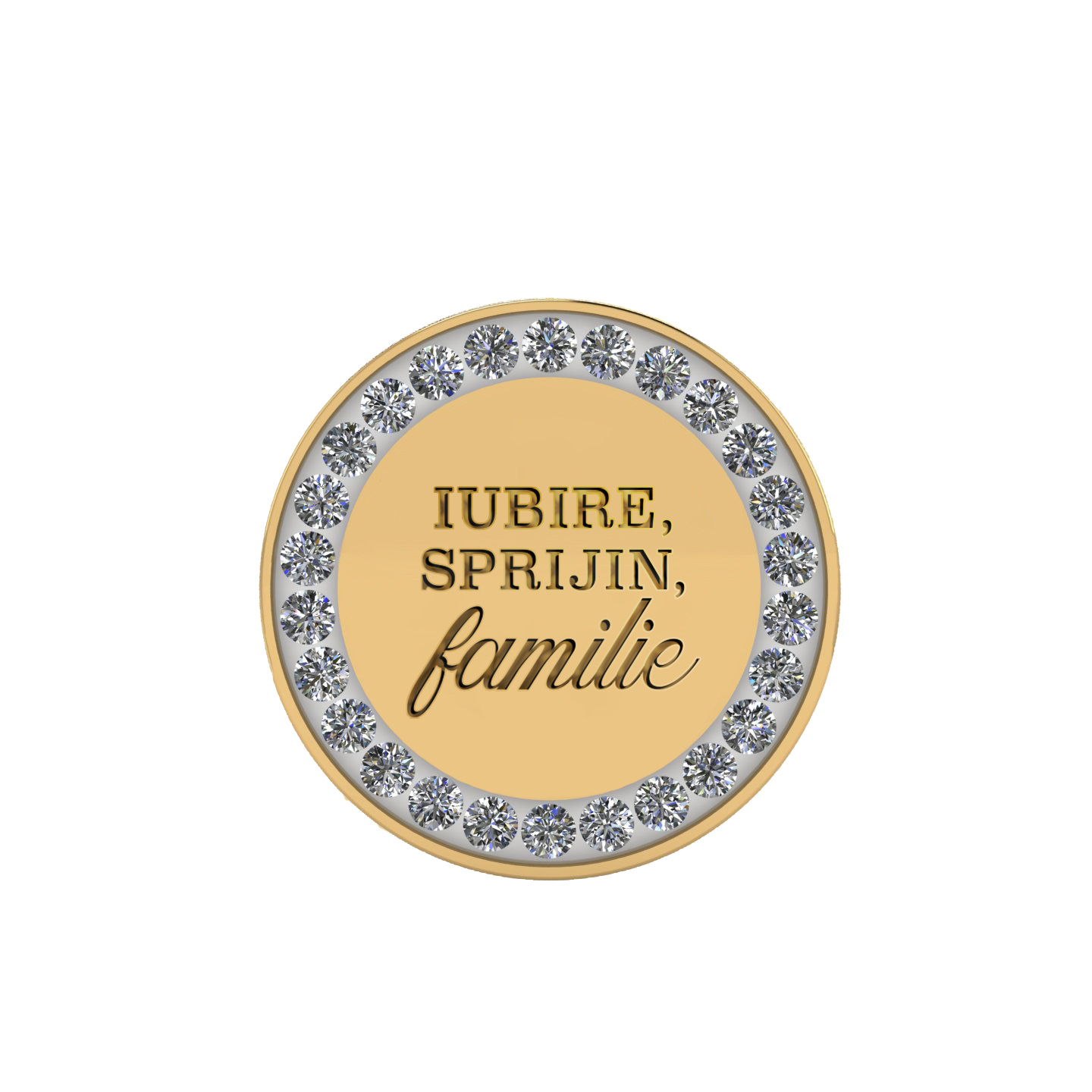 Pin Cristal Gravat Gold Plated 24K – ”Iubire, sprijin, familie”