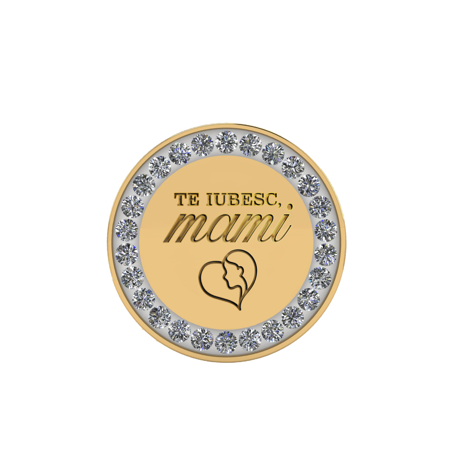 Pin Cristal Gravat Gold Plated 24K – ”Te iubesc mami”