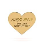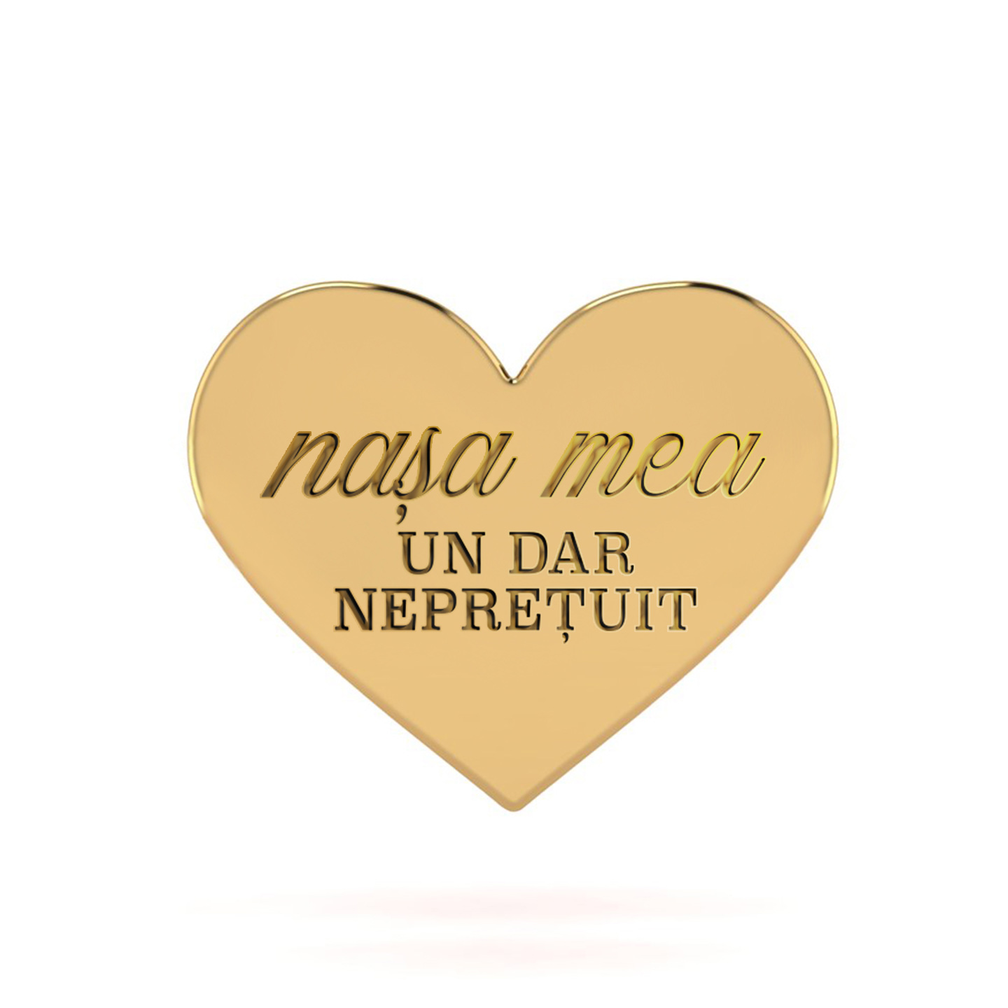 Pin Inimă Gravat Gold Plated 24K – ”Nașa mea un dar neprețuit”
