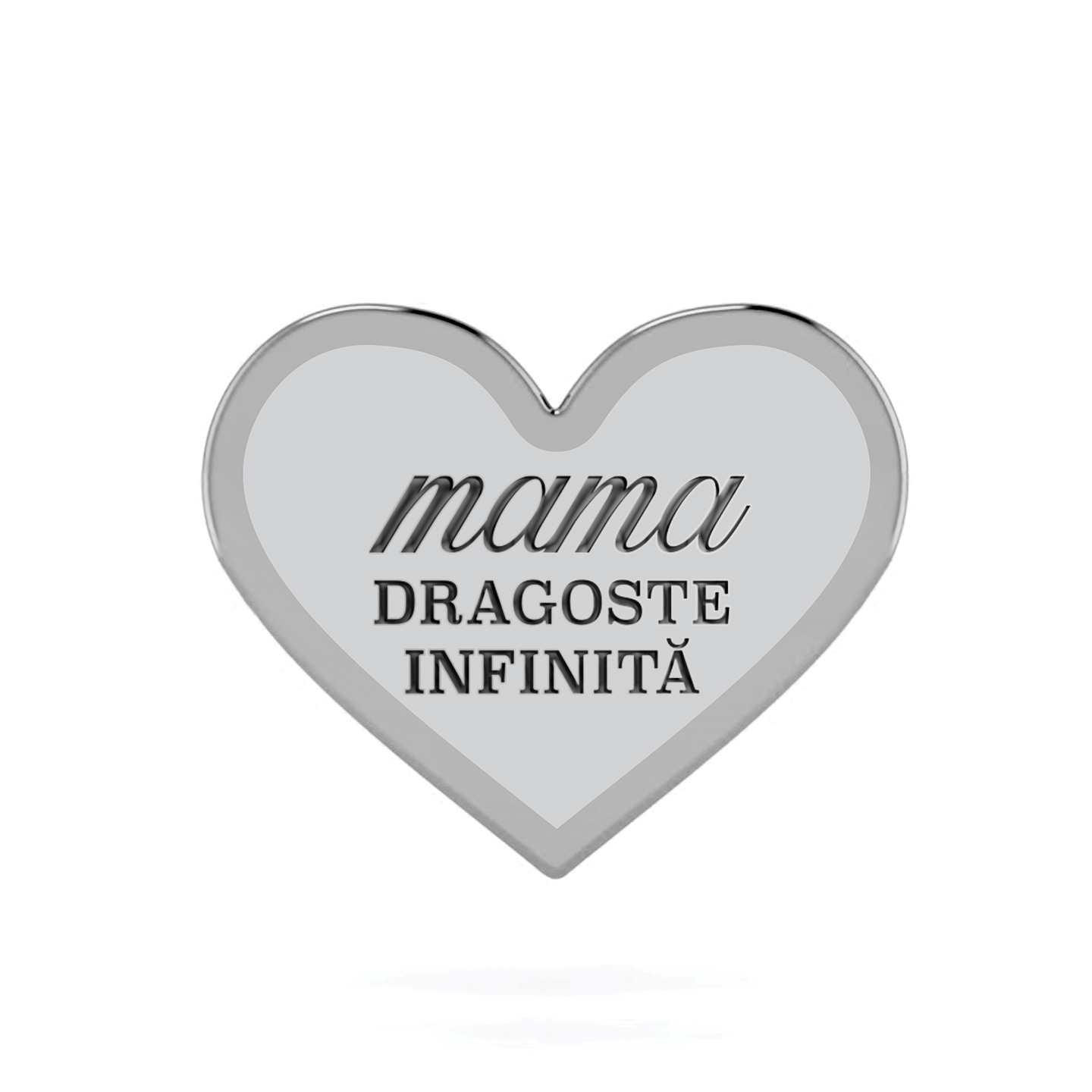 Pin Inimă Mat Gravat Placat cu Palladium – ”Mama dragoste infinită”